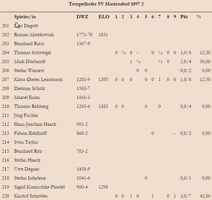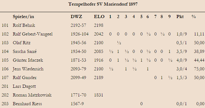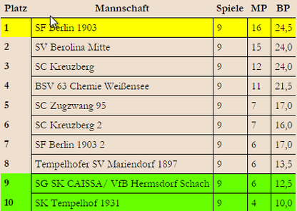 Daher guckte ich nun sofort auf den Ergebnisbogen beim Match der SF Berlin 1903 I gegen die SG Caissa VfB Hermsdorf I und mir fielen diverse Steine vom Herz als ich dort das Ergebnis sah: Die SF Berlin 1903 I hatten 3-1 gewonnen und wir somit die A-Klasse gehalten.