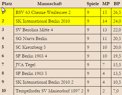 Mit 3 Mannschaftspunkten liegen wir in der Tabelle aktuell auf Platz 7 und müssen in der nächsten Runde am 07.02.2017 auswärts zur 1. Mannschaft des SC Kreuzberg reisen.