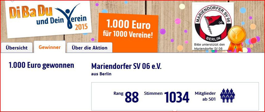 Rückblicke: "DiBaDu und Dein Verein 2015"! Vielen Dank an alle die für uns gestimmt haben! Siehe Siegerbanner 1000,00 Euro weiter unten!